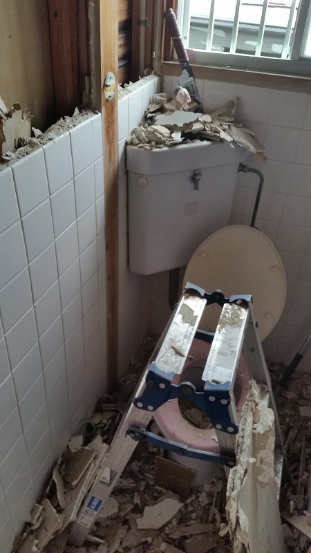 壁を壊すにも後ろの壁を壊さぬよう、、、慎重に。。