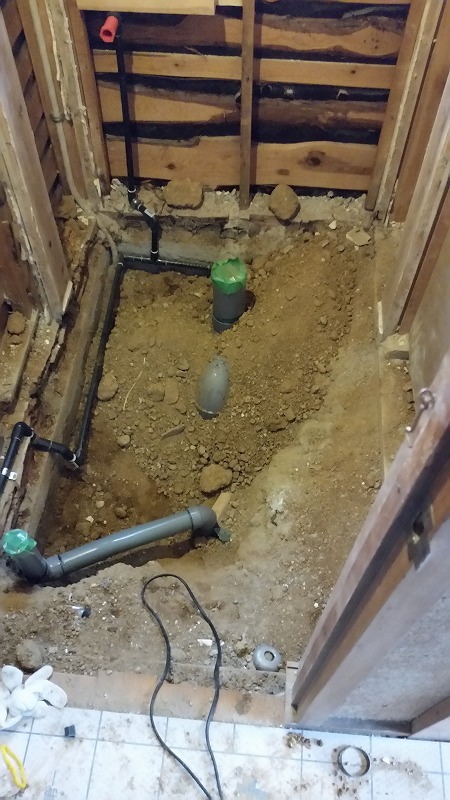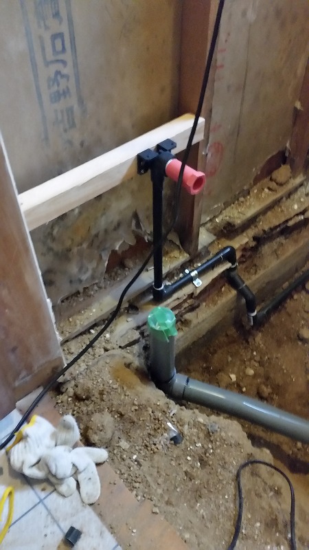 既存の床タイルに付いていた排水を手洗い排水に使用する事に^^