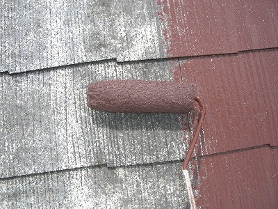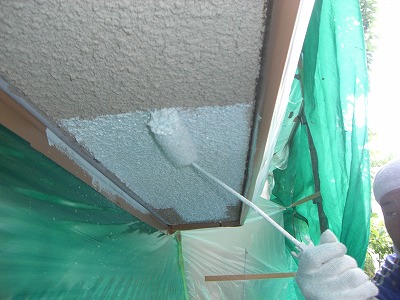 そして、、壁と並行して屋根も下地を塗っていきます。