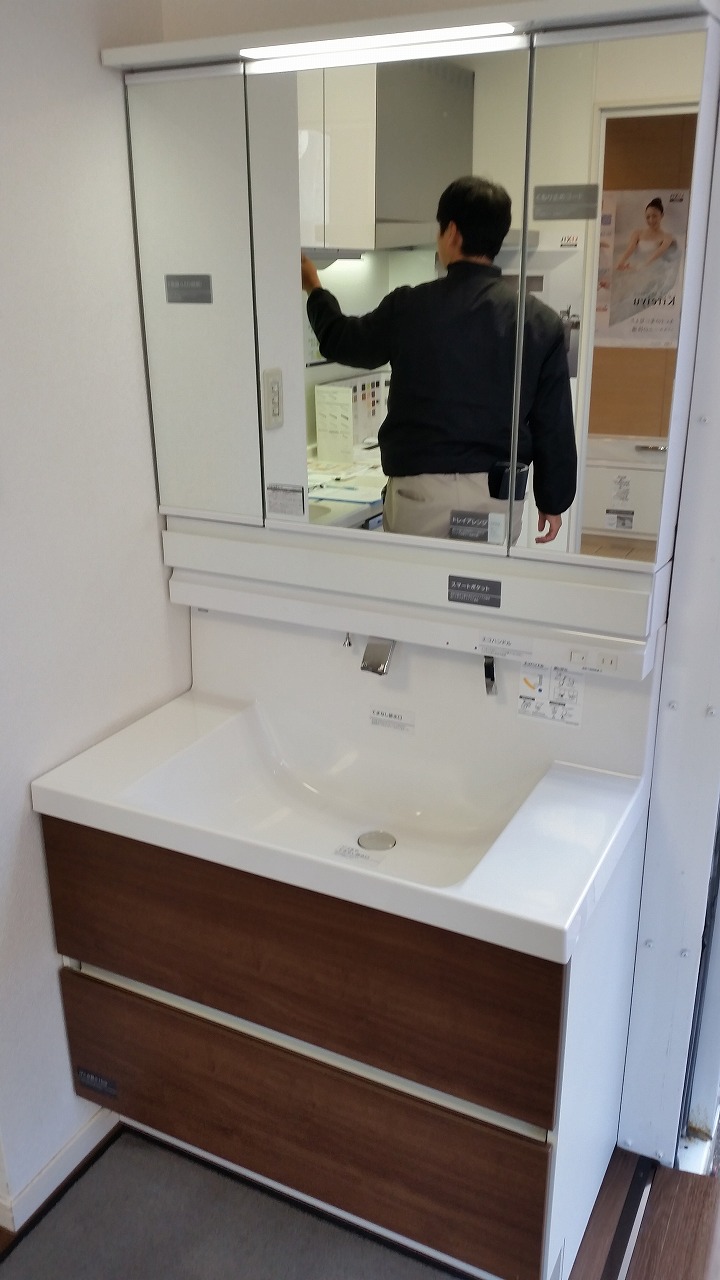 洗面化粧台!(映っているのは社員さんです(笑))