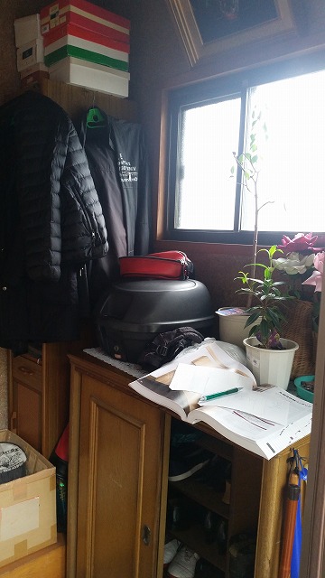 作りつけの収納棚では無かったので荷物の収納スペースが少なく表に出てしまってます。
